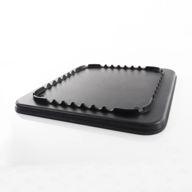 Plaque à plancha carrée. Mesurant 25 cm de coté, elle s’adapte parfaitement sur le réchaud à gaz CAMP4 Cook’n Fold ! Elle existe en 2 modèles de revêtement : lisse ou nervuré. Dans les 2 cas, la plaque à plancha est pourvue d’un revêtement anti-adhésif, permettant de cuisiner tout en limitant l’apport de matière grasse. Facile d’entretien, le nettoyage est rapide, et convient pour la préparation de tout aliment, de l’entrée jusqu’au dessert !