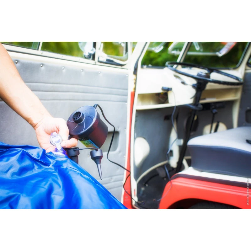 Vraiment pratique, ce matériel de camping s’alimente sur secteur via 230 V (prise Française classique) ou 12 V via une prise allume-cigare très pratique pour une utilisation en fourgon aménagé, camping-car, bateau ou sur le terrain de camping. Livré avec ses trois embouts de gonflage, il s’adapte à la majorité des valve de matelas du marché.