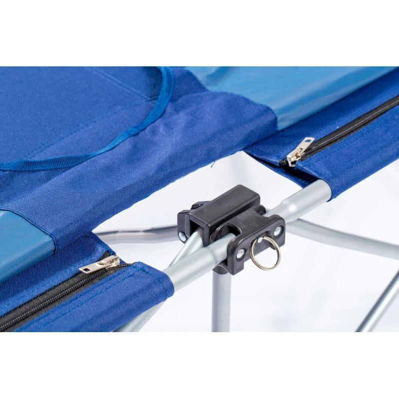 Comme son nom l’indique, ce lit de camp pour camping est à l’instar de ce que l’on trouve pour les bébés, un lit parapluie qui se plie et se replie sur lui même comme un parapluie. Pratique donc à transporter et à ranger dans le coffre, il ne prend que très peut de place une fois plié (112 x 20 x 22 cm). Confortable et robuste grâce à sa toile polyester 600D il supporte une charge jusqu’à 120 kg !