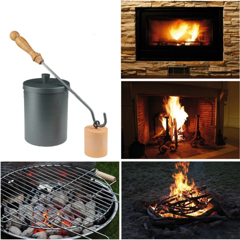 Le pot allume-feu est une solution simple pour faire démarrer les feux rapidement et en toute simplicité. Le pack se compose d’un crochet pour ne pas se brûler, d’un pot donc et d’une pierre poreuse. Cette dernière s’imbibe d’huile ou de pétrole (type huile pour lampe par exemple) et remplace le petit bois ou le papier journal. Une fois enflammé, ce système permet d’allumer directement du bois de 2 à 4 cm de diamètre.
