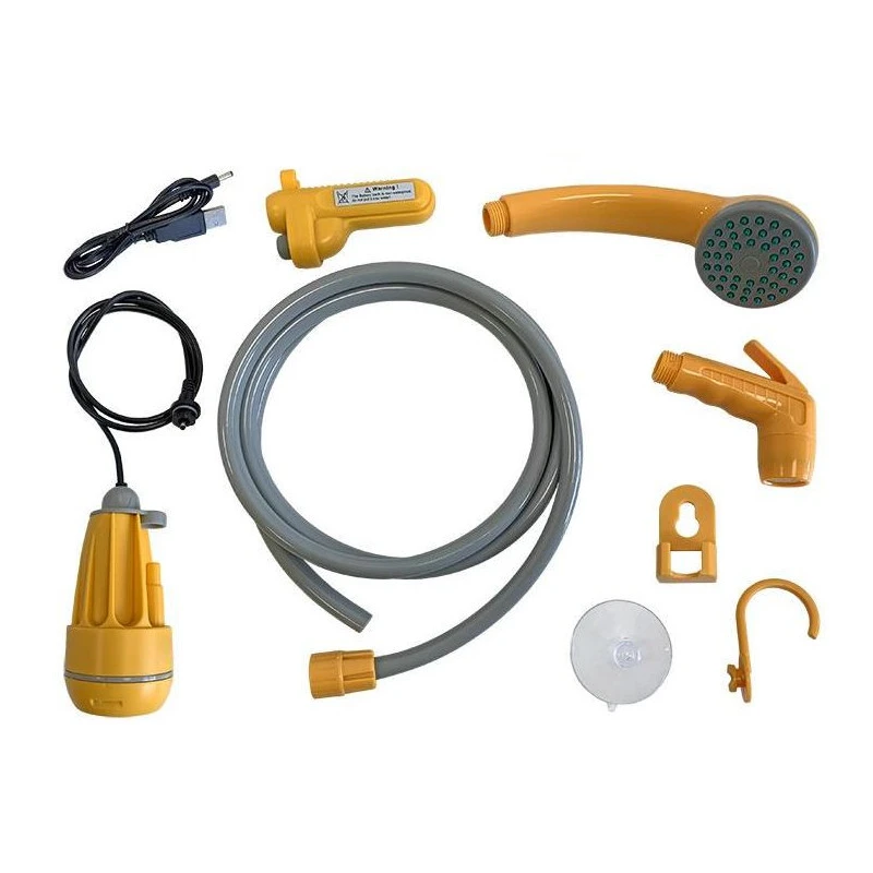 Kit douche Ă©lectrique autonome HABA sur batterie avec pompe immergĂ©e recharge USB pour l’Ă©quipement du fourgon amĂ©nagĂ© ou au camping.