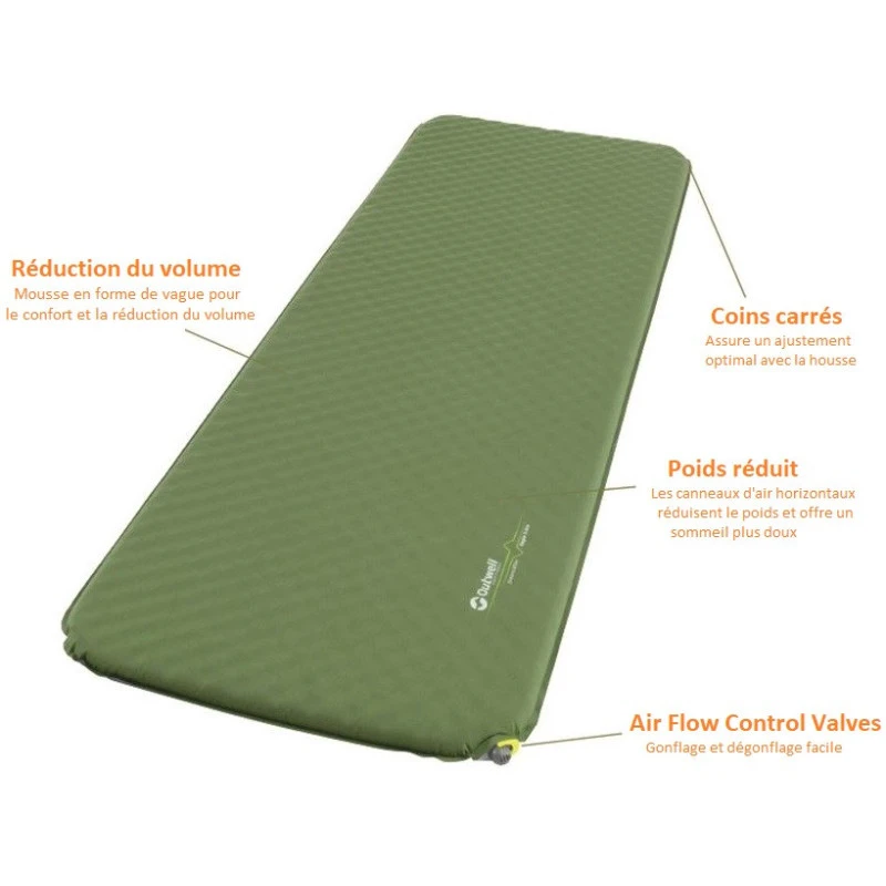 Découvrez le pouvoir de la mousse ondulé OUTWELL, elle permet un gonflage rapide du matelas et assure un confort incomparable pour un simple matelas autogonflant en plus elle est parfaitement isolante et assure au matelas Dreamcatcher un coefficient de résistance thermique digne des meilleurs matelas techniques.