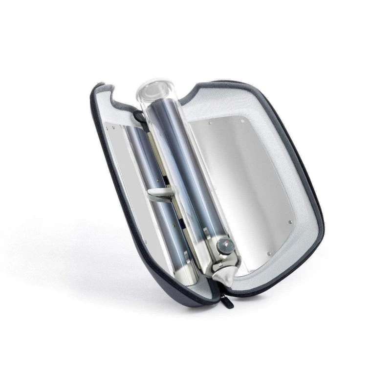 Comment çà marche ? Le GoSun Go de SOLAR BROTHER se compose de 2 réflecteurs qui vont capter les rayons du soleil et les concentrer dans le tube sous vide. Il va ensuite rapidement monter en température. Sa forme parabolique est optimale pour capter au mieux les rayons du soleil sans réajustement.