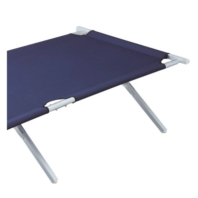 Ce lit est camp est conçu avec une tubulure carrée striée en aluminium anodisé supportant une charge pouvant aller jusqu’à 100 kg. Son tissu polyester enduit PVC est très facile d’entretien.